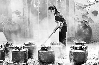 广西柳州年轻的手艺人展示客家娘酒酿造技艺。新华社发
