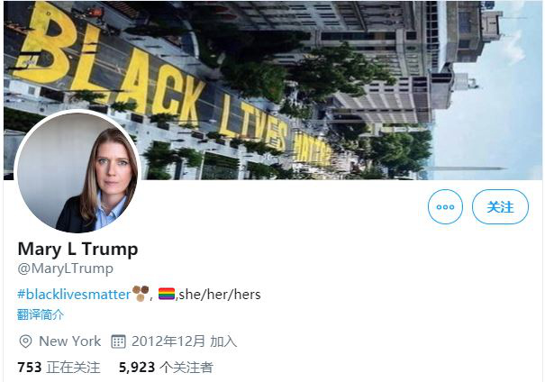 但在最近更新的首页图里,玛丽以反种族歧视标语“黑人的命也是命”为背景,还在个人简介中加上了相关的关键词。