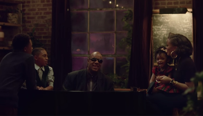 Stevie Wonder自幼失明,却是美国音乐界的传奇人物,曾获得过27座格莱美奖。广告中的他边弹钢琴边唱,随后与女歌手Andra Day以及孩子们共同合唱,展现出温馨团圆的圣诞气氛。
