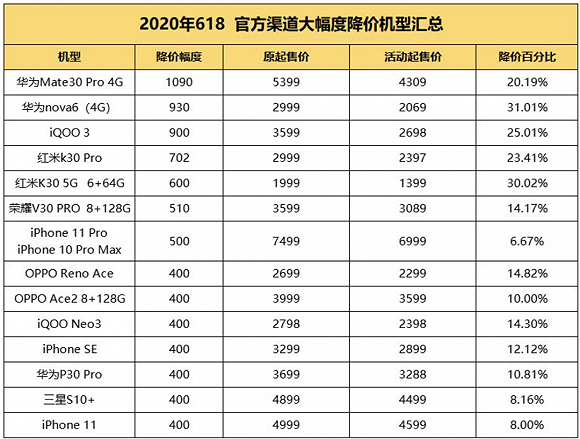 所以,我们看到了各大厂商在今年618期间纷纷推出了至少300元的优惠幅度,甚至有些机型的降价幅度达到800元。一方面是部分线下的高毛利机型开始在线上进行降价销售,其二也是厂商希望以价格战的方式,弥补一季度的手机销量损失。