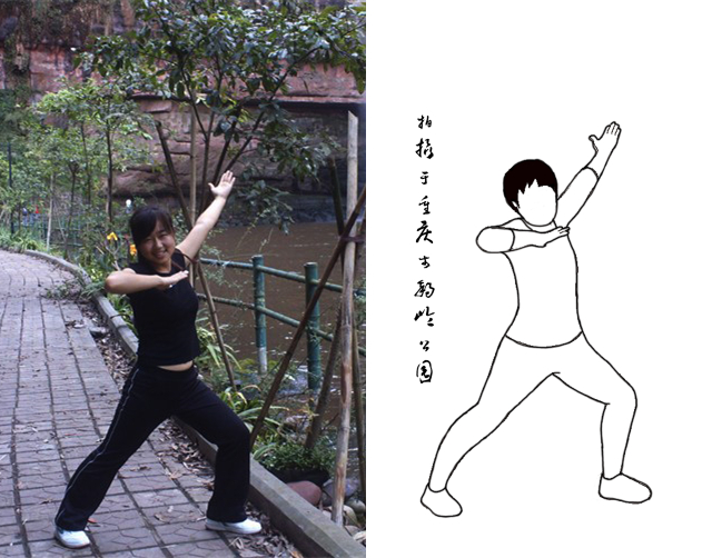 但她并不觉得传统拳术已经真正没落,就像《隐拳谱》的名字一样,如果将拳术的意义抽离本体观察,你会发现它就隐藏在我们身边,每时每刻都在。比如在这种旅游中最最欢快的“剪刀手”生活场合。