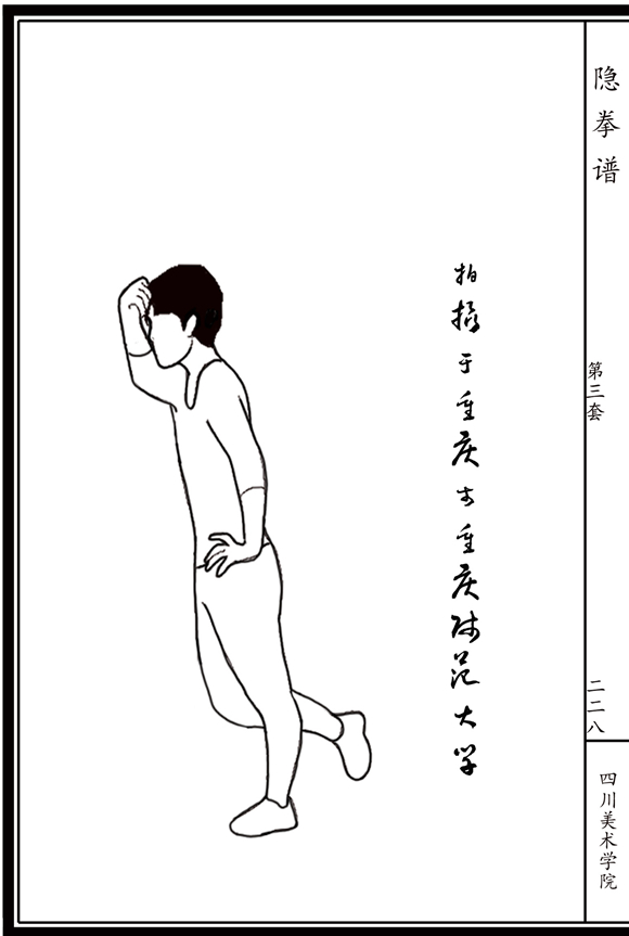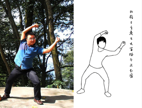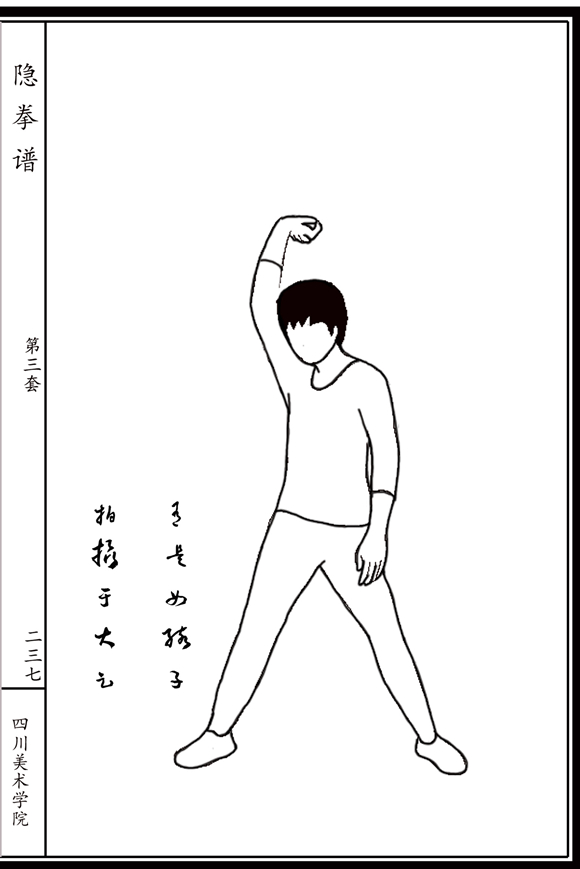在毕业作品展上,张娅芳还把这套《隐拳谱》以武术操的形式做成了视频,配上某套广播体操的魔性音乐节奏,现场引得来看展的孩子都不禁跟着比划。
