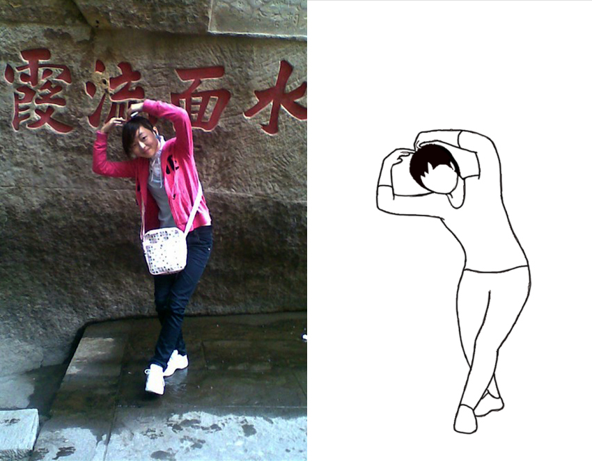这种自小的熏陶,让张娅芳在看到别人凹造型的时候不自觉就产生了联想。她也发现人们“到此一游”的留影动作其实大同小异,整理一下,好像也是件蛮有意思的事耶。