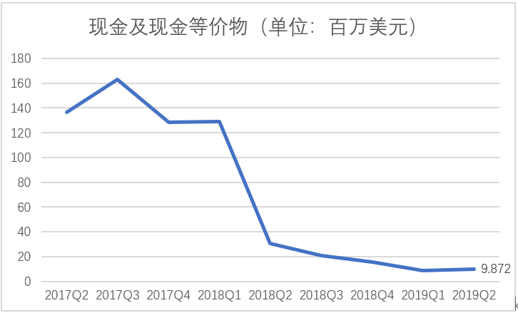 从财务报告看,最近三年,人人公司持有的现金及现金等价物在2018年一季度到二季度呈断崖式下跌,到2019年二季度末只剩987.2万美元。