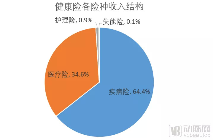 据中国银保监会披露的数据,在2019年的7066亿元的原保费收入中,疾病险和医疗险占据了绝大部分的份额,护理险和失能险两项合计才到1%的份额,医疗意外险为新险种占据的份额可忽略不计。