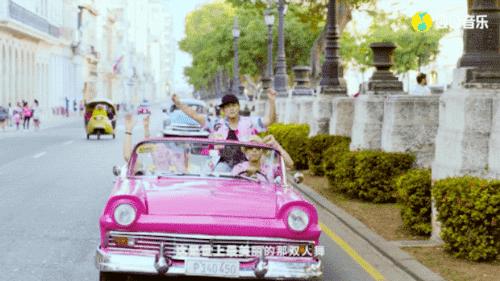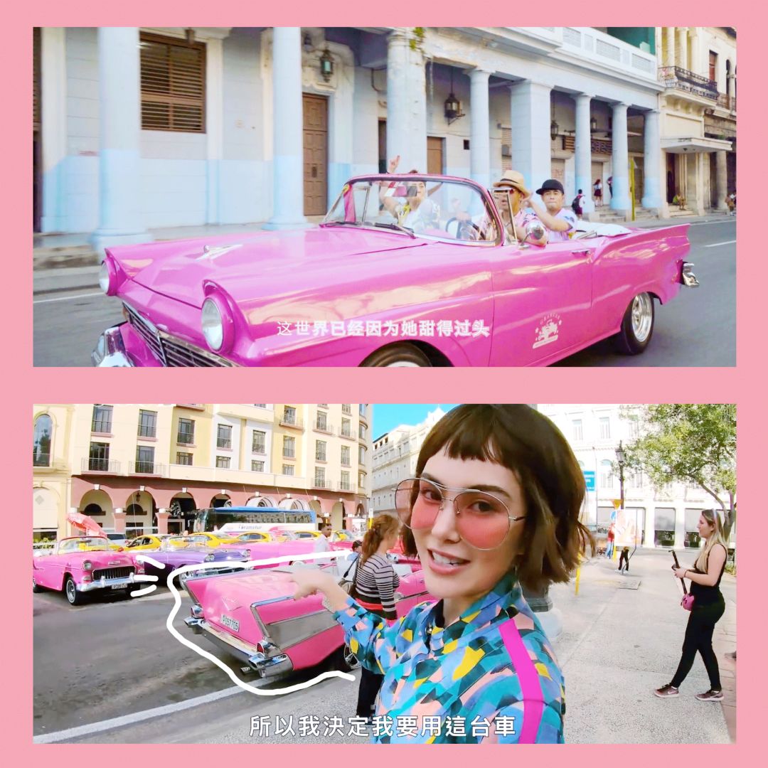 里面那辆粉色的敞篷车,是昆凌喜欢的,今年2月在古巴工作的时候还特意指了指。