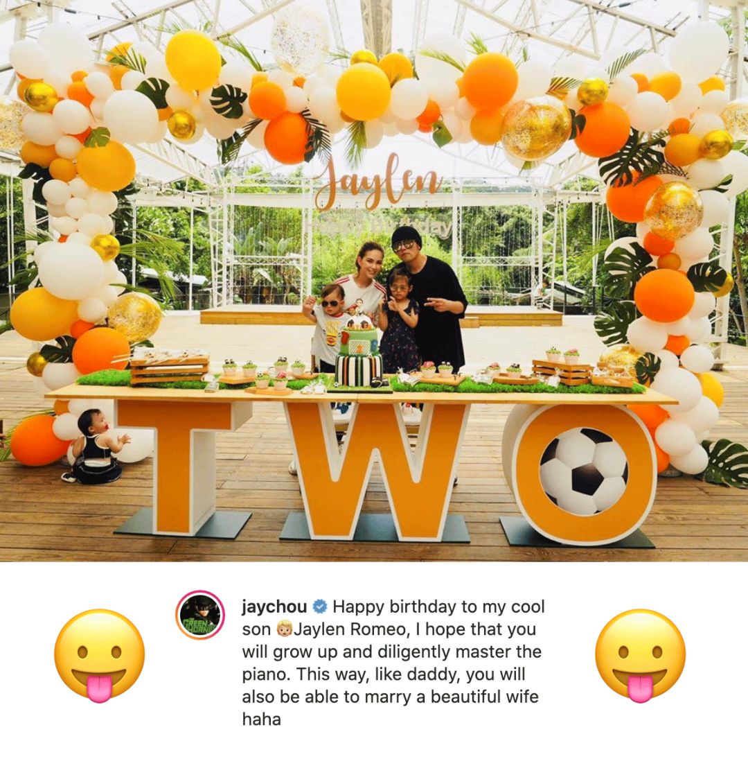给自己儿子过生日,也会提到昆凌,“向老爸学习,就能娶到漂亮老婆哦”~