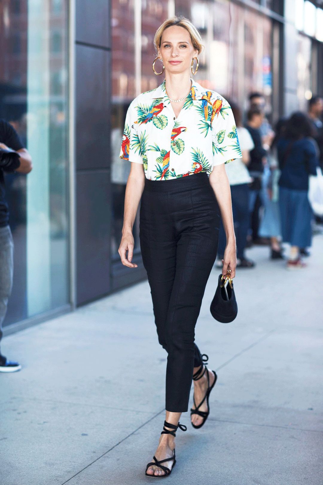 我觉得女生穿海岛花衬衫更有优势,走下半身消失路线,或者配个90年代风直筒牛仔裤,复古得一塌糊涂。(再强调一遍,只要不太胖不油腻。)