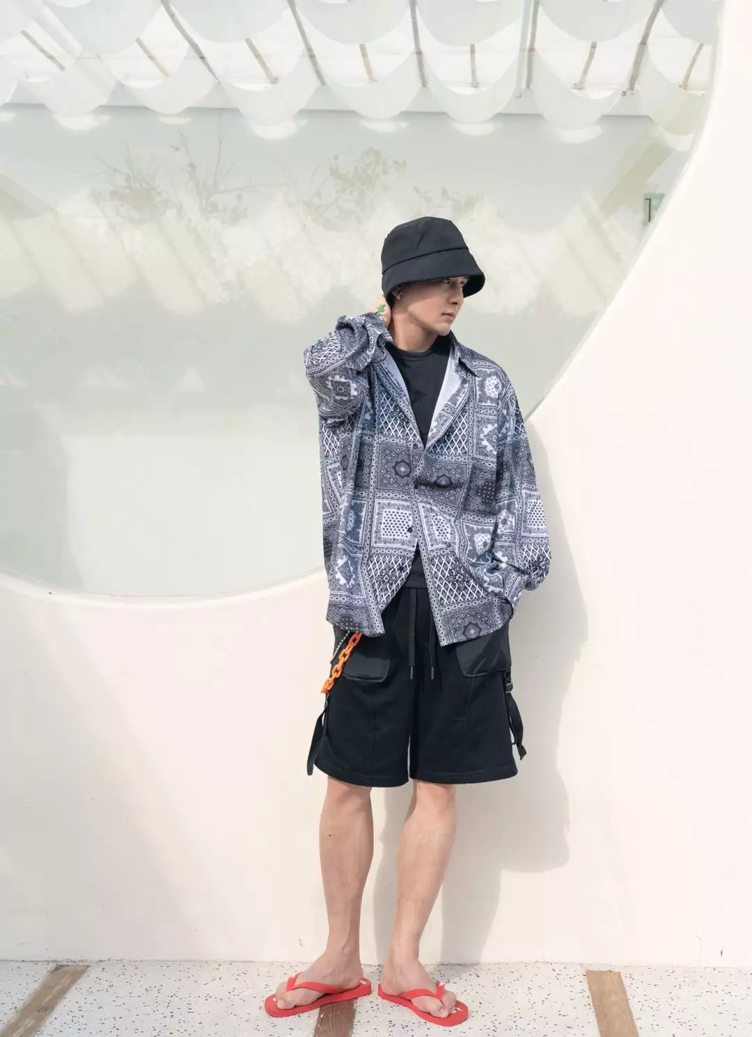 根据我的经验,选一件好看的海岛花衬衫,关键在于配色。全蓝、全红的比较好穿,配色协调的(比如我身上这件)也不难。