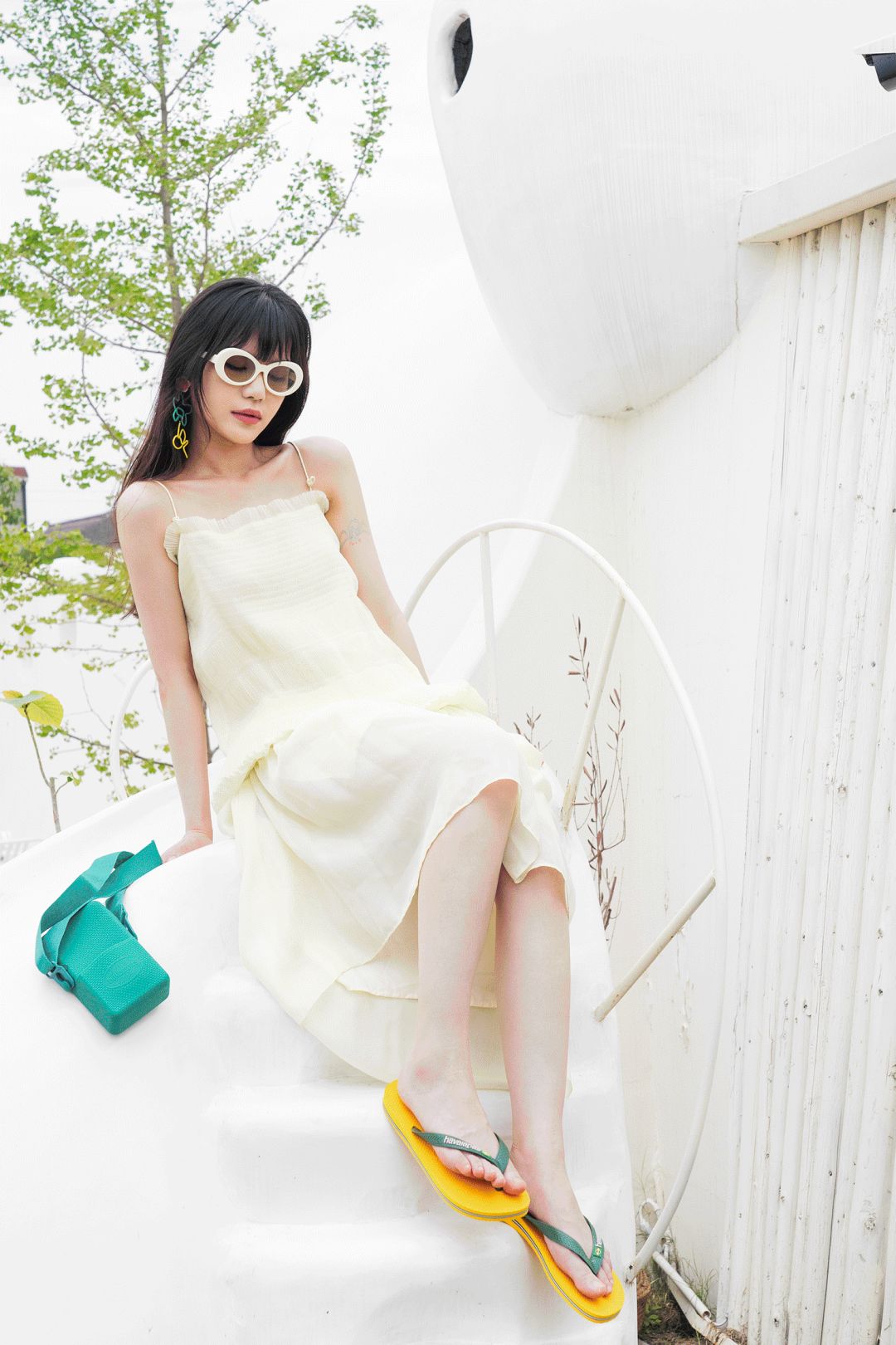 Havaianas哈唯纳最近还找了宋妍霏当中国区代言人,aka人肉种草机。她把最爱的马丁靴换成了人字拖,穿起来也挺有时髦感的。