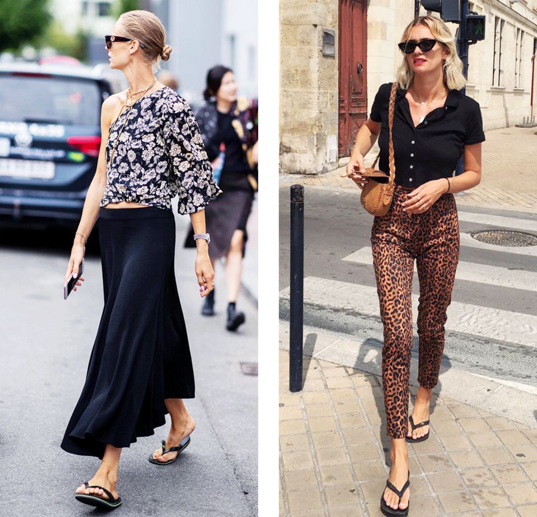 人字拖也没大家印象中那么上不了台面。有些人觉得,人字拖就是澡堂子风,但我刷街拍图,发现今年好多博主都把细带凉鞋换成了人字拖。