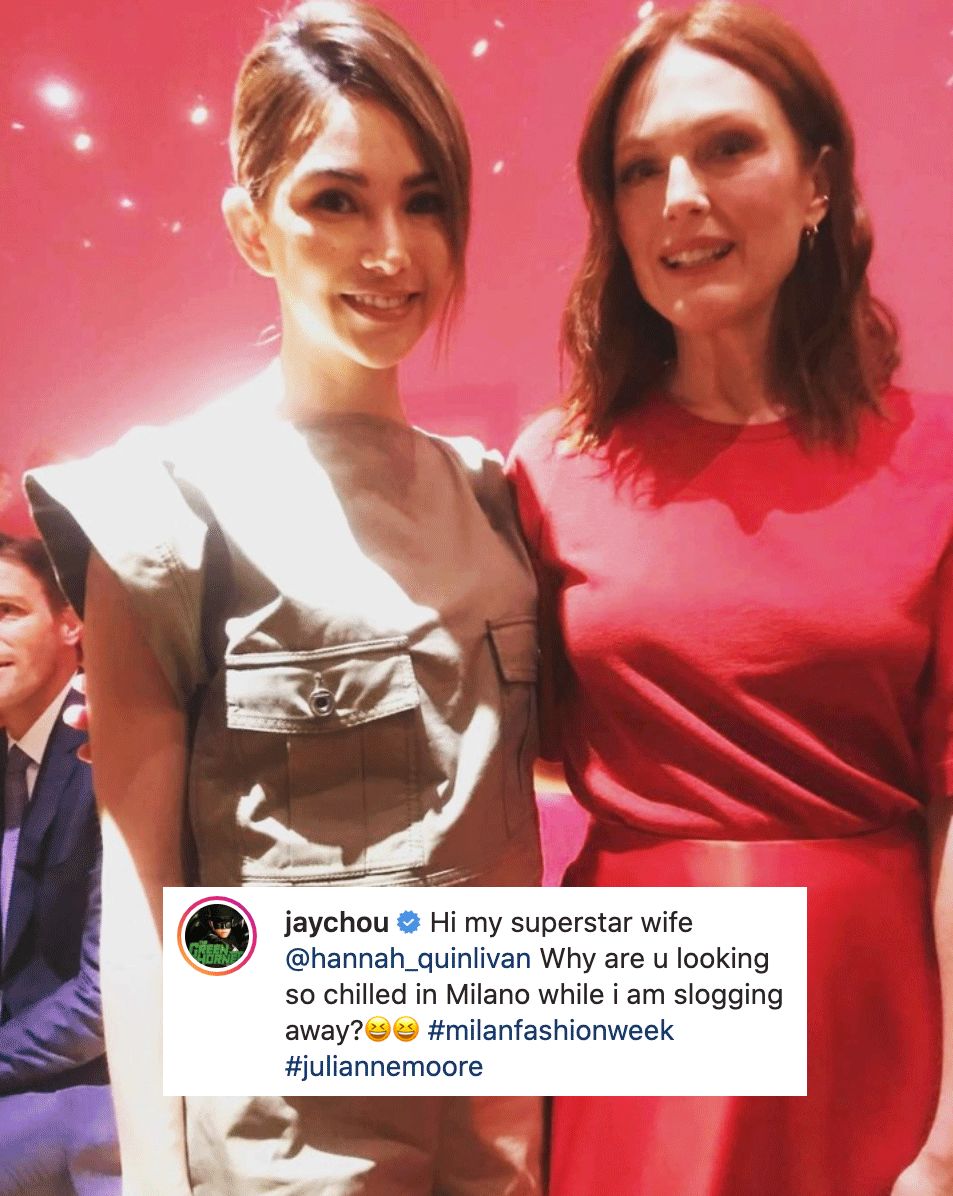 有次昆凌晒出自己和Lily Collins撞脸的照片,周杰伦完全不care右边的人:
