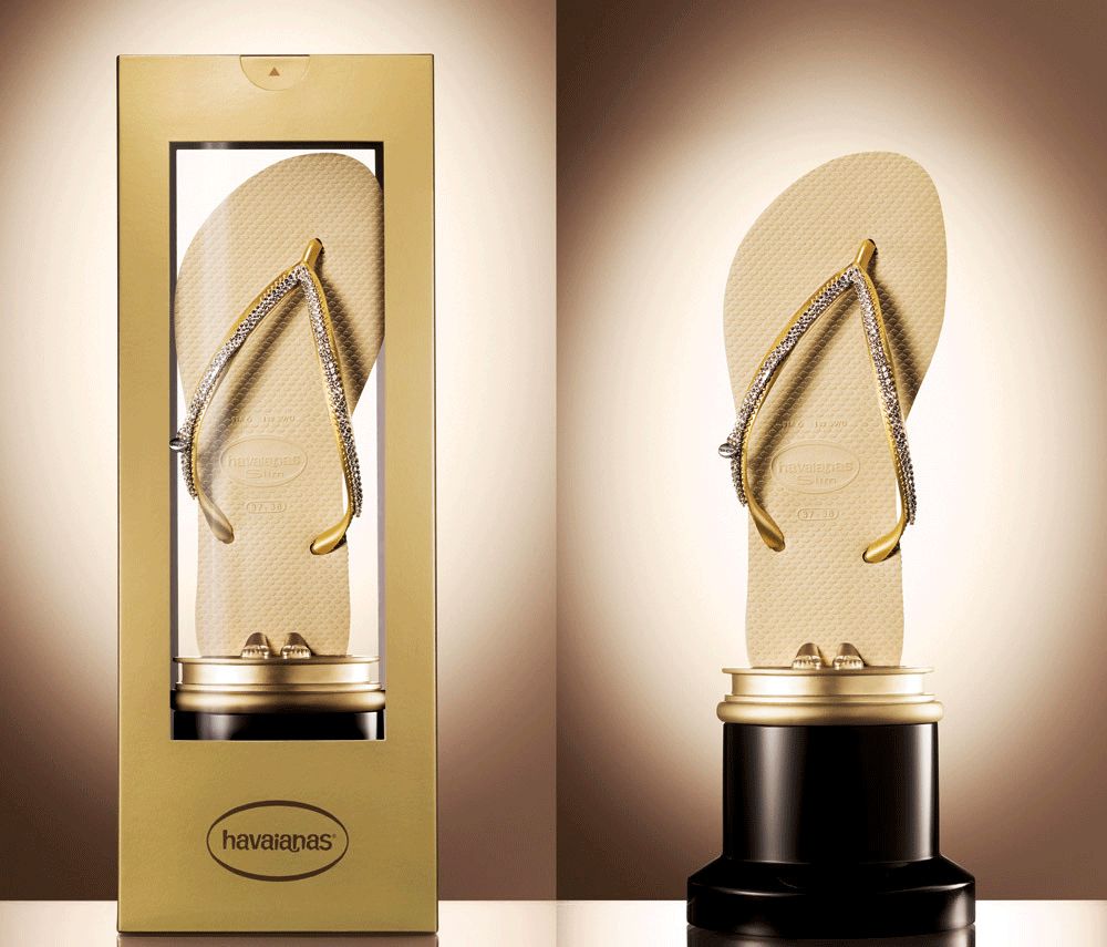 知道吗?连奥斯卡颁奖典礼也送Havaianas哈唯纳。06年给每个提名者准备的大礼包里就有Havaianas哈唯纳镶钻人字拖,上面还印了名字。