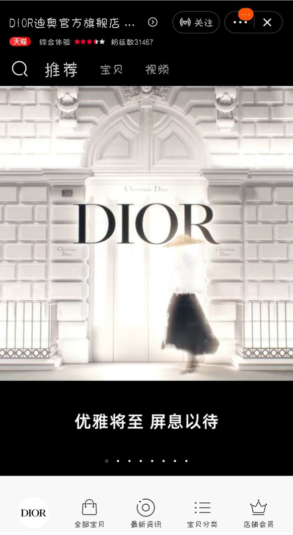 最新关于奢侈品品牌数字化的讨论来自于Dior,6月14日Dior正式入驻天猫,并标注为“官方唯一天猫旗舰店”,目前已有近6万粉丝关注。但与已经进驻天猫的Burberry、Prada等奢侈品品牌不同,Dior天猫店仅上架了部分美妆类、香水类产品,而服饰箱包似乎并不打算上架。