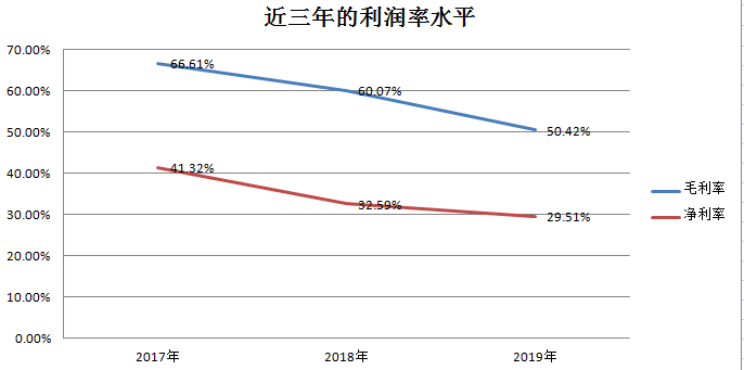 虽然睿创微纳的盈利保持高速增长,但公司的利润率却在逐年下滑,这在一定程度上也表明竞争压力在加大。2017年—2019年,睿创微纳毛利率分别为66.61%、60.07%及50.42%,同期公司的净利润率分别为41.32%、32.59%及29.51%。去年公司为了给客户让利从而占领更大市场,对探测器和机芯进行降价销售,导致探测器毛利率下滑9.53pcts至 58.58%,机芯的毛利率下滑11.08pcts至66.37%,同时毛利率较低的整机产品销售收入占比的提升,多因素共同导致了公司毛利率整体下降。