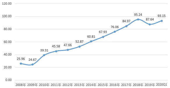 2008-2020年加加食品的存货周转天数(单位:天)