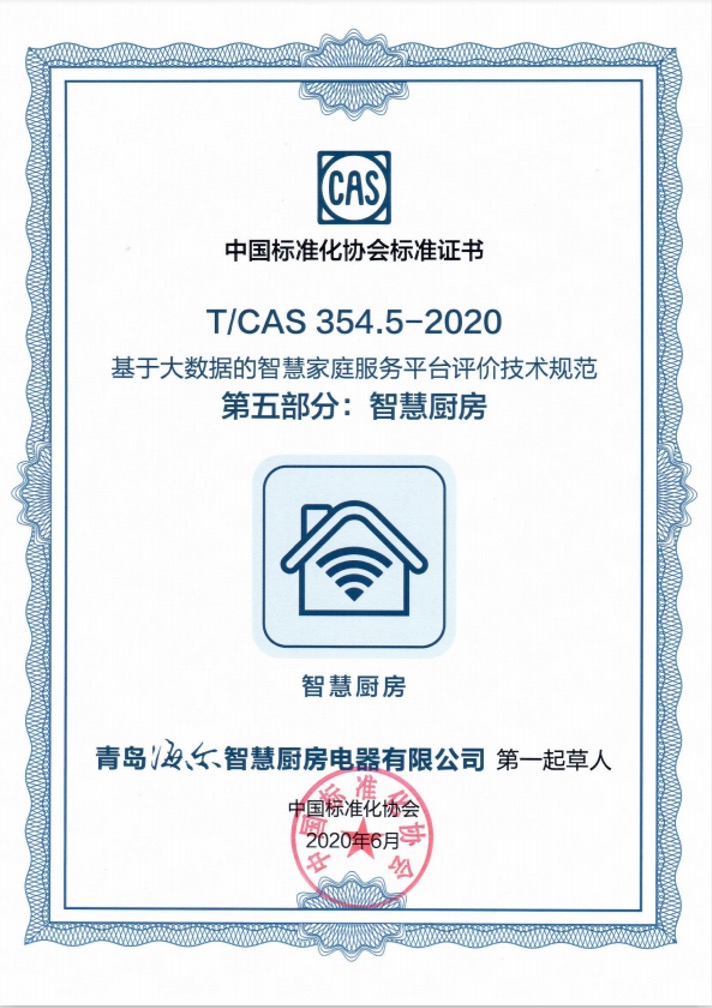 现在好消息来了,6月20日,由海尔智慧厨房主导的《T/CAS 354.5—2020基于大数据的智慧家庭服务平台评价技术规范第5部分:智慧厨房》标准正式发布,这是行业内首个智慧厨房场景标准。