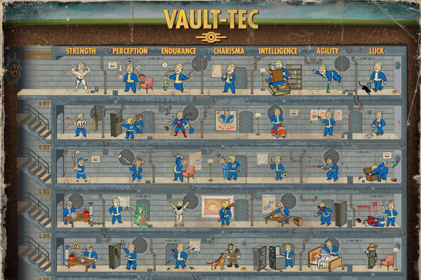 而在《辐射4》中,玩家可以根据自己的初始属性学习不同的perk。一般来说,在游戏初始的属性分配就决定了很长一段时间里技能的学习以及玩家战斗的模式。如果你留意游戏网站的话,你大概会发现玩家们研究出了大量的《辐射4》流派:包括通过低智力高幸运点出“白痴学者”以获得更多经验值的“白痴近战流”或者高感知点出的“VATS流”等。这些玩法都各有趣味。但是,随着等级的增长,你的人物逐渐成形,所选择的技能就会变得趋同——因为最有价值的perk是固定的,大量的鸡肋perk如“尸鬼体质”基本不会有人去选择。