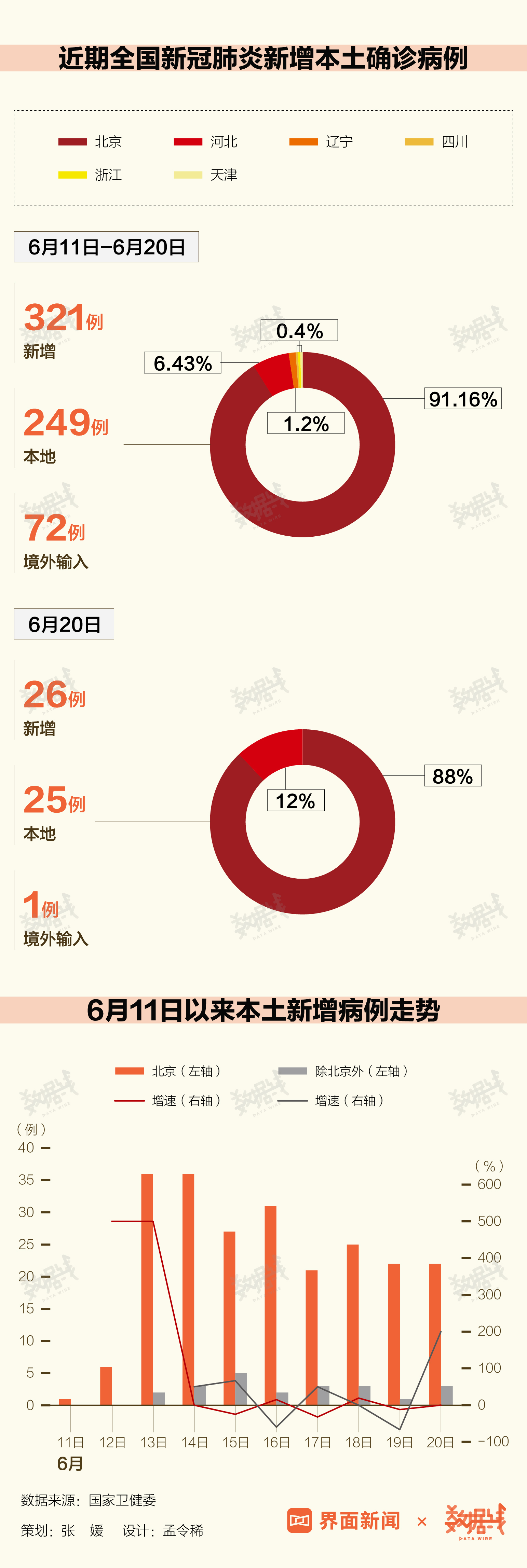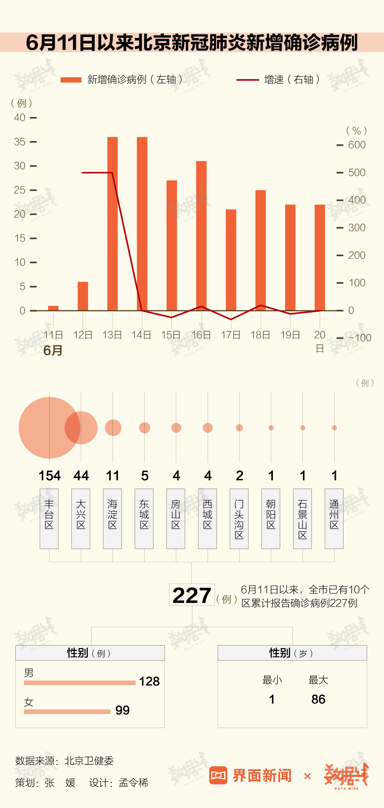 自新发地市场6月11日出现疫情以来,截至20日,北京已累计报告本地确诊病例227例,在同时段全国本地确诊病例数中的占比超九成。