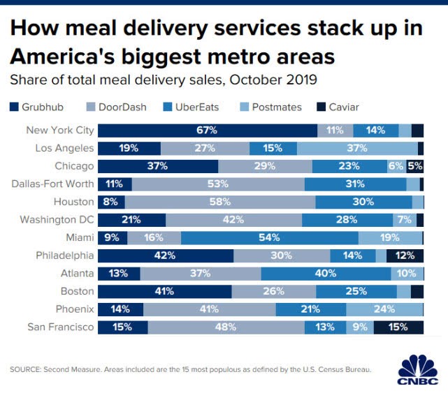 这也是资本希望看到的Uber故事:如果Uber Eats完成对GrabHub的收购,它的市场份额将远远超越Doordash,成为美国外卖市场中的老大。