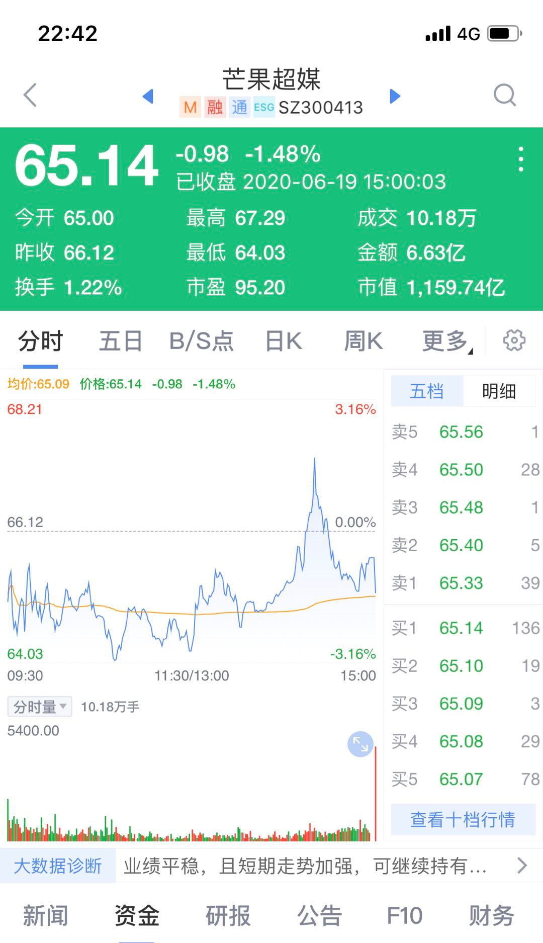 受《姐姐》节目的拉动,包含芒果TV核心资产在内的芒果超媒成为近期市场上表现最好的个股之一。股价从上周四收盘的52.79元/股,一路上涨到这周五收盘的65.14元/股,整体涨幅达到23.39%。芒果超媒市值也因此突破千亿大关,一度摸高到1200亿元,十分接近行业第一爱奇艺182亿美元(1274亿元)。