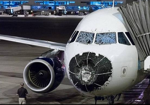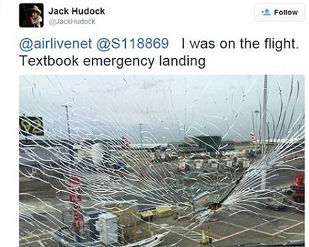 根据机组成员JackHudock上传推特的照片来看,这架波音767-300客机的挡风玻璃大面积碎裂。