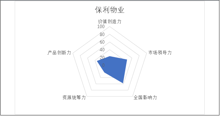 在市场领导力、全国影响力、产品创新力等3个维度中,保利物业均排名前10,表明其在管理面积与营收方面领先大部分上市物业公司,在全国已经具备较大的影响力并有较为广泛的布局,同时积极创新产品与服务。在价值创造力及资源统筹力维度中,保利物业均处于上市物业公司下游,表明其在为股东持续创造高于市场平均价值方面亟需加强,同时在现有资源和资产潜力方面的提升空间巨大。