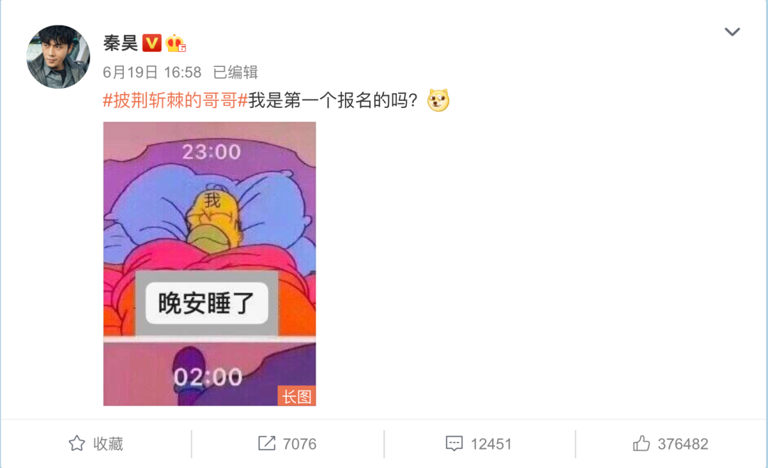 6月3日,《乘风破浪的姐姐》官宣第二天,"哥哥"代表孙红雷在微博喊话"鸣不平";6月19日,芒果TV就把《披荆斩棘的哥哥》安排上了,"东北舞王"的这句呐喊还被贴到了招商PPT里。