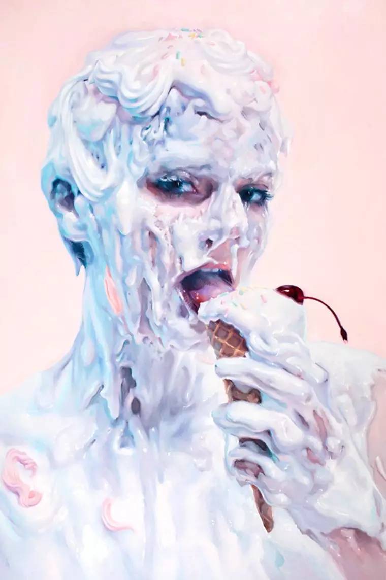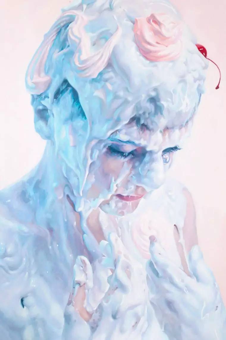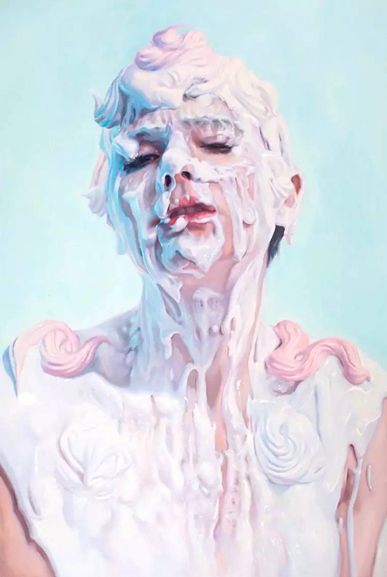 这组名为It's Not Milk(这不是牛奶)的人像画就是出自他手。题目也是很随意。Ivan希望通过一些模糊、暧昧的意象来激发人们的感受与思考,“肖像画不仅仅是画人,更是对深层次的性意识的描述。”不深啊,这些性意识不都已经浅得从头顶射出来了嘛。