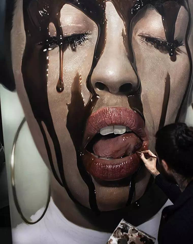 如果说Ivan是最会用颜射的艺术家,德国佬Mike Dargas第一个不服。毕竟Ivan射的还是类似牛奶的东西,而Mike射在人像脸上的,是蜂蜜和巧克力……不过我就喜欢德国人的严谨,他给每幅画都起了名字——不仅方便处女座们保存,跟它们聊天也有个称呼了。
