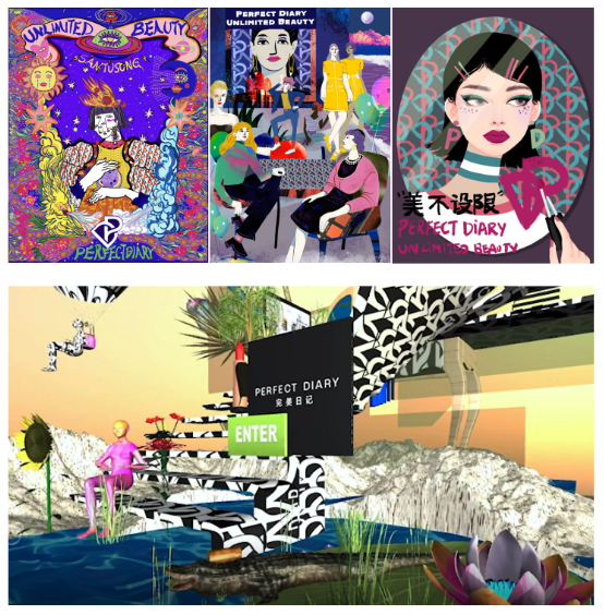 完美日记已经不是第一次与知名艺术家合作了。在过去的品牌三周年庆里,完美日记就携手了海内外新锐艺术家创作了品牌视觉海报。而这一系列的艺术家创作,正是完美日记创立的#PerfectDiaryArtist#(完美日记艺术家)这个主题系列里面。而就在这几次的合作后,在微博上这个话题的阅读量已经超过百万,并还在持续上升中。