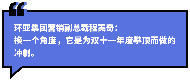 在环亚集团营销副总裁程英奇看来,618是电商销售高峰,是所有品牌再次实现品牌攀登高峰的小高峰。他说:“换一个角度,它是为双十一年度攀顶而做的冲刺。所以,我们不但要为618而战,也要树立长期战斗意识,为持续发展,持续销售增长的未来而战。”