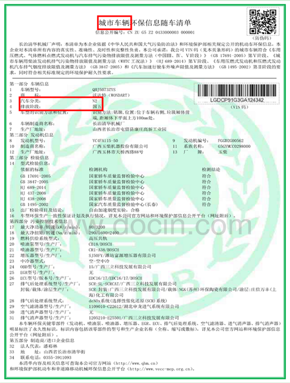二、查验车辆的《随车清单》中标注的车辆排放标准。