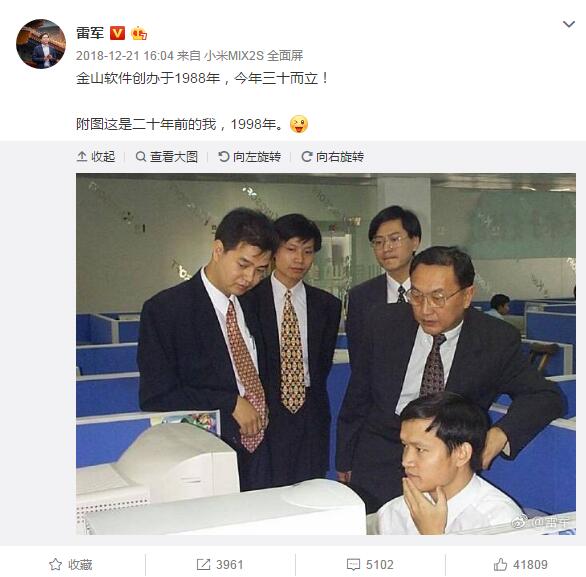1998年8月,雷军担任金山公司总经理,开始重装出发。