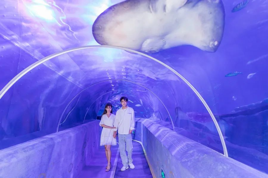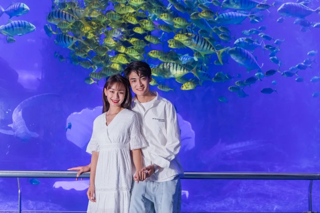 “海誓山盟”人气火爆是海底世界的网红打卡点之一近十米高的“定海神针”圆柱展缸物种丰富到让人目不暇接至于告白、求婚神马的这里早已见证了无数次~