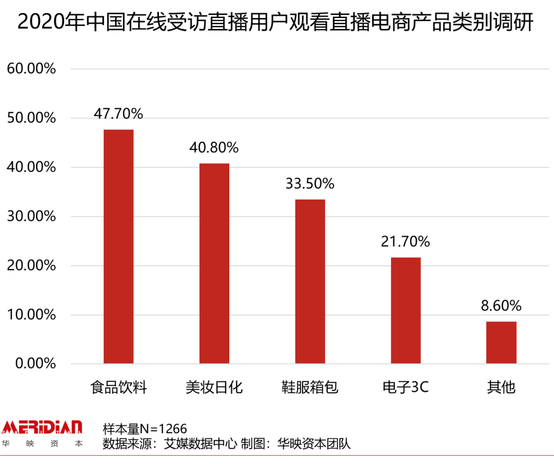 2020年中国在线受访直播用户观看直播电商产品类别调研