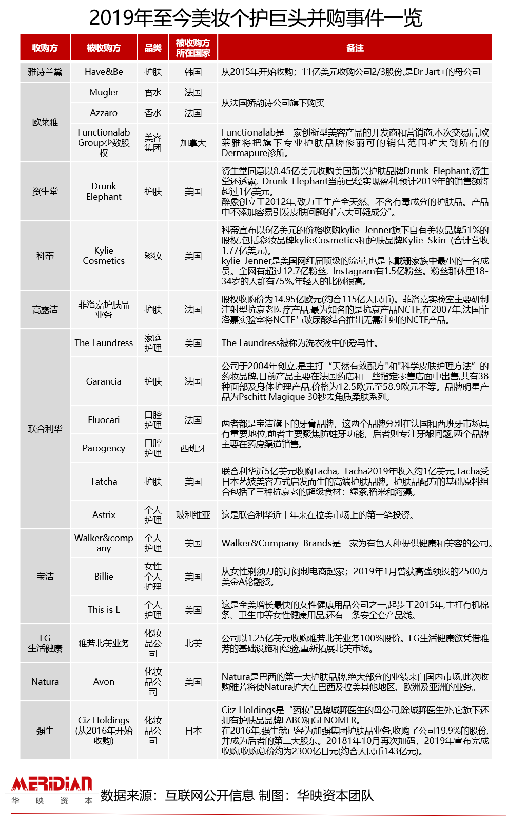 - 具有专业背景的品牌成为收购热门:例如药妆、天然、科学护理、医疗美容等关键词;