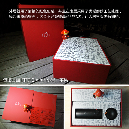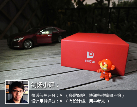 外层包装对于网购产品尤为重要,盯盯拍mini的快递外层采用了常规的瓦楞纸箱,而内部的红色产品包装盒还裹上了几层气泡保护膜,并且纸盒硬度够强,一般快递中抗摔抗压性没问题,不要问我为什么没拍气泡保护膜,刚拿出来就被同事抢去挤泡泡,你懂的...