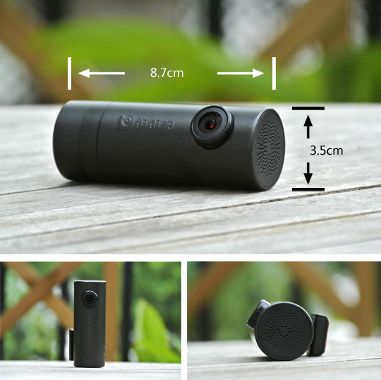 盯盯拍mini记录仪采用了一个圆柱体设计,机身尺寸数据说太多并无意义,毕竟网友看不到真机感受不到真实大小,所以有个参照物更好,就拿跟一个iPhone5参照比较,mini确实机如其名,在同级别的行车记录仪中是相当mini。