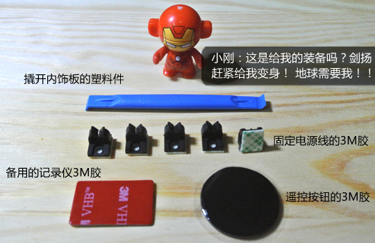 包装盒里的部件主要分成6个部分:盯盯拍mini行车记录仪主机、USB线、点烟器USB车充、装机工具、说明书和一个不具名的神秘按钮,卖个关子,后面揭晓,下面我们来一一看看。