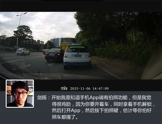 行车记录仪这样结合互联网,可玩性大大提升,而且更加安全,这个小按键可以粘在中控面板上或者放置储物格里,开车安全还可以拍照创作,而且车头第一视角效果很好!下面是剑扬的创作,客官请点赞!