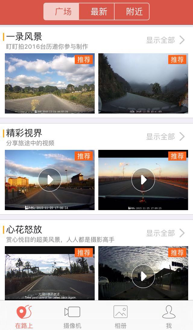 App还支持各种美化滤镜和特效用户社区,特别是"在路上"用户社区自驾游记,用户可给旅途照片添加文字描述,自动生成一篇自驾游记社交分享,并且支持所有社交网络平台(微信、微博、QQ),确实在互联网+时代可以让行车记录仪这么安全好玩,必须给盯盯拍点赞。
