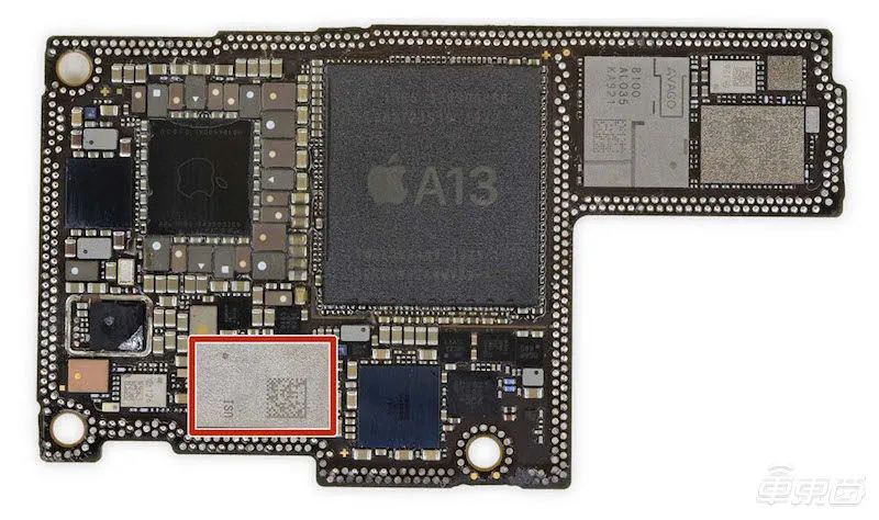 拆解图片中的苹果U1超宽频芯片(红色方框内)