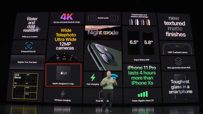 2019年9月,苹果发布了iPhone 11系列手机,在当时那场发布会上,苹果仅在演示文稿中展示了iPhone 11系列搭载U1芯片,但介绍iPhone 11系列的苹果高级副总裁Philip W. Schiller对这颗芯片只字未提。苹果官网也只用了一段文字描述了U1芯片。在iPhone 11系列发布后的大半年时间里,这颗神秘芯片究竟能干什么一直是人们讨论的焦点。