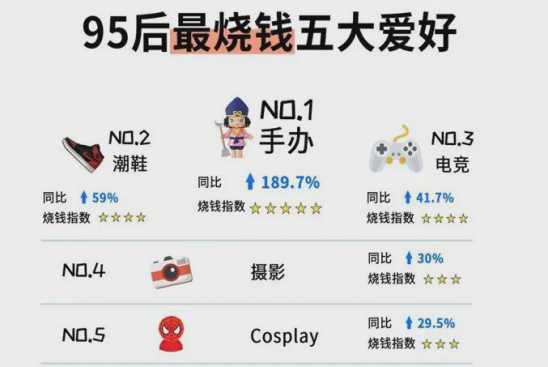 数据显示,潮玩手办成为95后年轻人中热度最高、最烧钱的爱好,在天猫上为盲盒年花费超过2万元的“硬核玩家”,一年有近20万人。近一年盲盒增速高达609%,消费者人均购买4.2个。