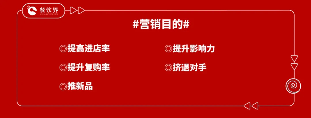 举个例子:提高进店率,你可以设置一个低价甚至免费福利对外传播,让过路客到店体验;而如果目的是挤退对手,则可能是把竞争对手的招牌菜在自己店做成引流菜,做到人无我有、人有我优、人优我廉;