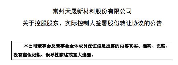 此前的3月31日,为解决公司控股股东、实际控制人之一、董事长吴海宙面临的股权质押风险问题,天晟新材及控股股东吴海宙、晟衍投资与融海资管签署了《股份转让意向协议暨战略合作协议》,拟向融海资管合计转让公司股份3000万股,使其成为天晟新材的战略投资者。时隔两个多月,这次股份转让迎来实质性进展。