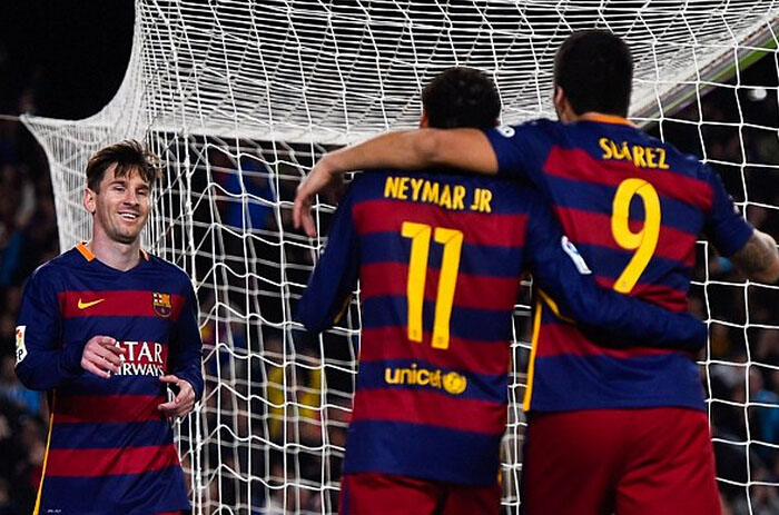 梅西、内马尔和苏亚雷斯组成的三叉戟让整个欧洲胆寒