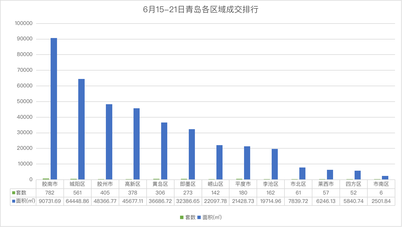 从区域来看,上周胶南市再次卫冕青岛区域周成交冠军。上周胶南市共卖房782套,共计90731.69平米。胶南片区上周多个单盘的优秀去化成绩,成为老胶南夺冠的重要支撑。