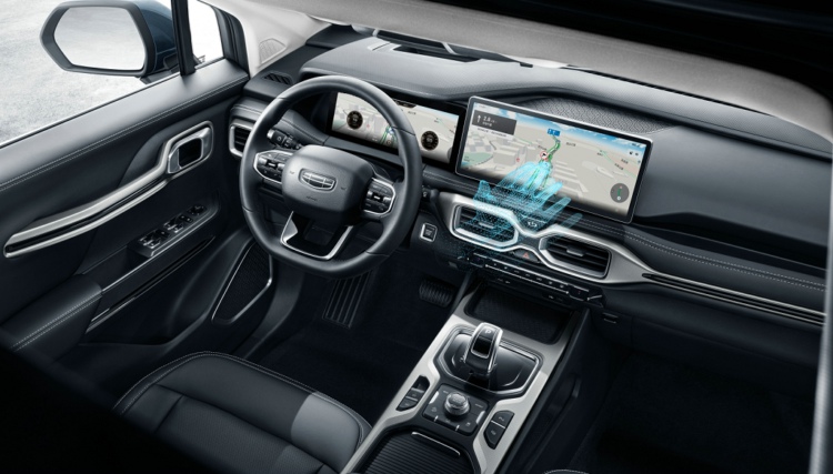 车机系统方面,豪越搭载了吉利最新的GKUI吉客智能生态系统,拥有同级独有的车规级E01高性能四核芯片,具备智能语音交互,AI智能识别,秒懂指令功能,可在60多种使用场景中实现多达214种的人机交互子命令。
